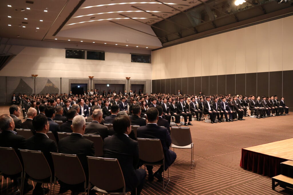 全国から集まった新入社員約300人に加え、グループ各社の社長や役員、採用担当者などを含め、総勢約400名で開催されました。
